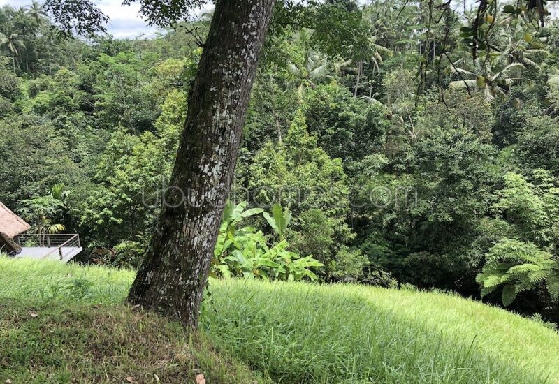 This quiet and peaceful plot of land in Kelusa, Ubud is just 20 minutes North of Ubud Center and is facing an unspoiled river valley view with palm groves. The land has been terraced and partially landscaped with many plants and trees and flower on the plot itself. A small chalet has already been constructed on the land and is able to either be added on to, or removed entirely, to suit the plans of the future owner. There are several freshwater springs on the property including one large enough to supply enough continuous water to support a natural swimming pool that would require no filters or chemicals. The access road comprises approximately 300m2 and would be shared with a neighbor, along with a car parking area. A highly reccomended plot of land, well suited for someone looking to build a property that is in a pristine and tranquil setting.